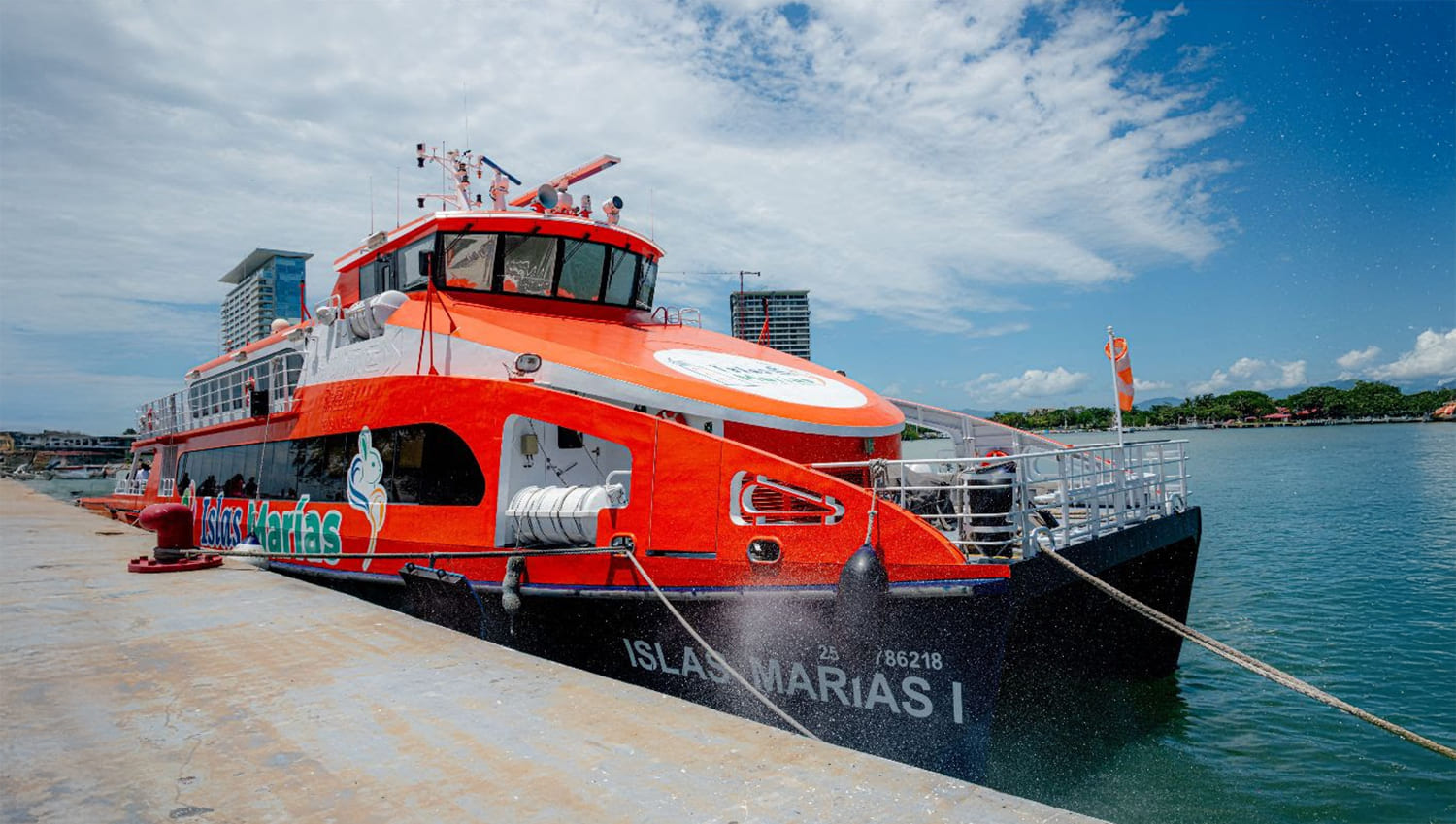 The journey, lasting approximately five hours, is carried out aboard modern high-speed vessels with a capacity for over 190 passengers, offering a comfortable and safe voyage from the Jalisco coast to Puerto Balleto on María Madre Island. The experience is designed as a weekend tour that includes round-trip maritime transportation and a three-day, two-night stay.
